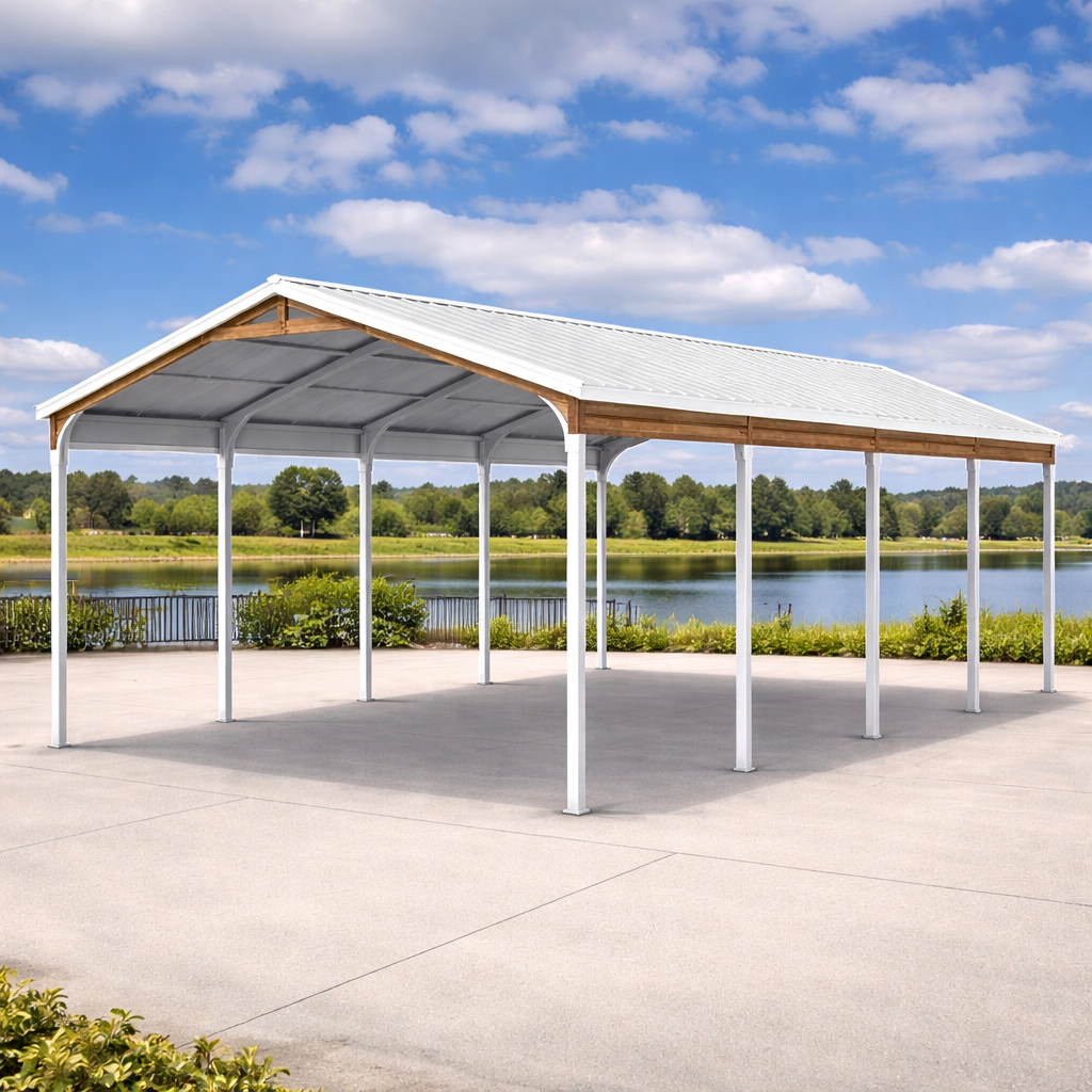 Das Carport dient als überdachter Stellplatz für Fahrzeuge im Außenbereich. Die Konstruktion ist auf eine zuverlässige Nutzung ausgelegt und bietet Schutz vor Regen und direkter Sonneneinstrahlung. Durch das schlichte Erscheinungsbild lässt es sich gut in verschiedene Umgebungen integrieren.