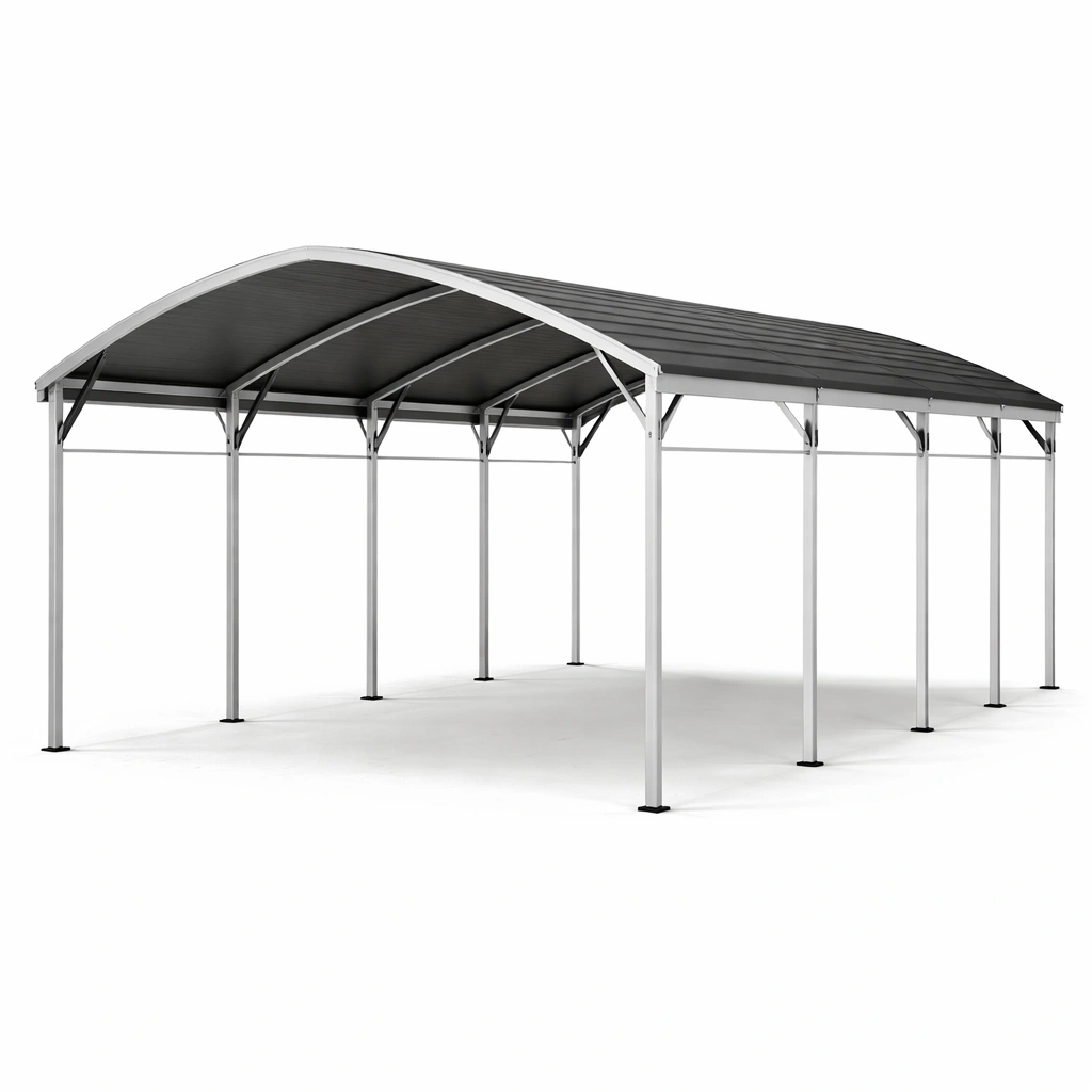 Der Carport besteht aus einem robusten Aluminiumrahmen und Dachplatten aus 6 mm starkem Polycarbonat.